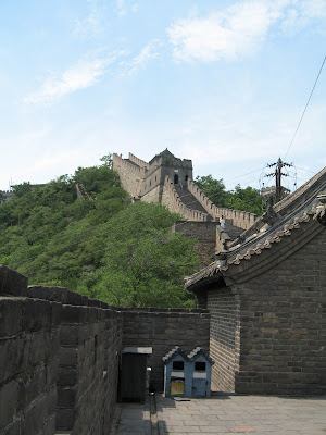This is the entrance to the Great Wall. Our tour included the admission tickets, otherwise we'd have to buy them at the ticket booth. Notice the guy in the light blue shirt, smoking his pipe?